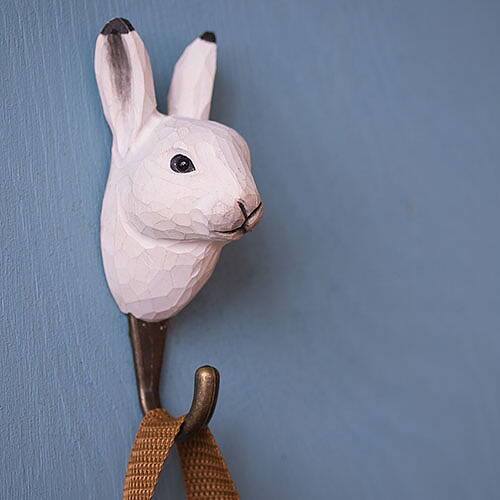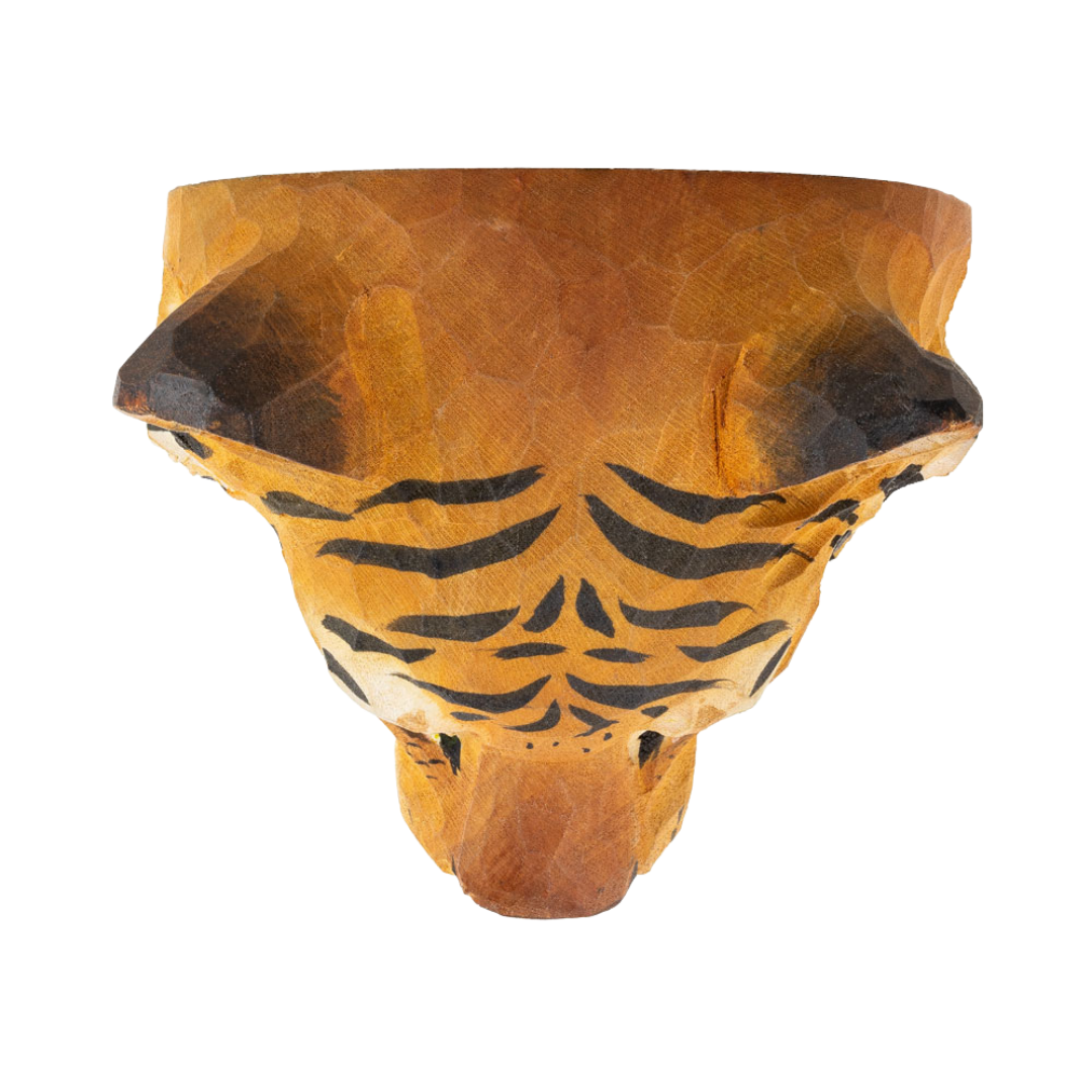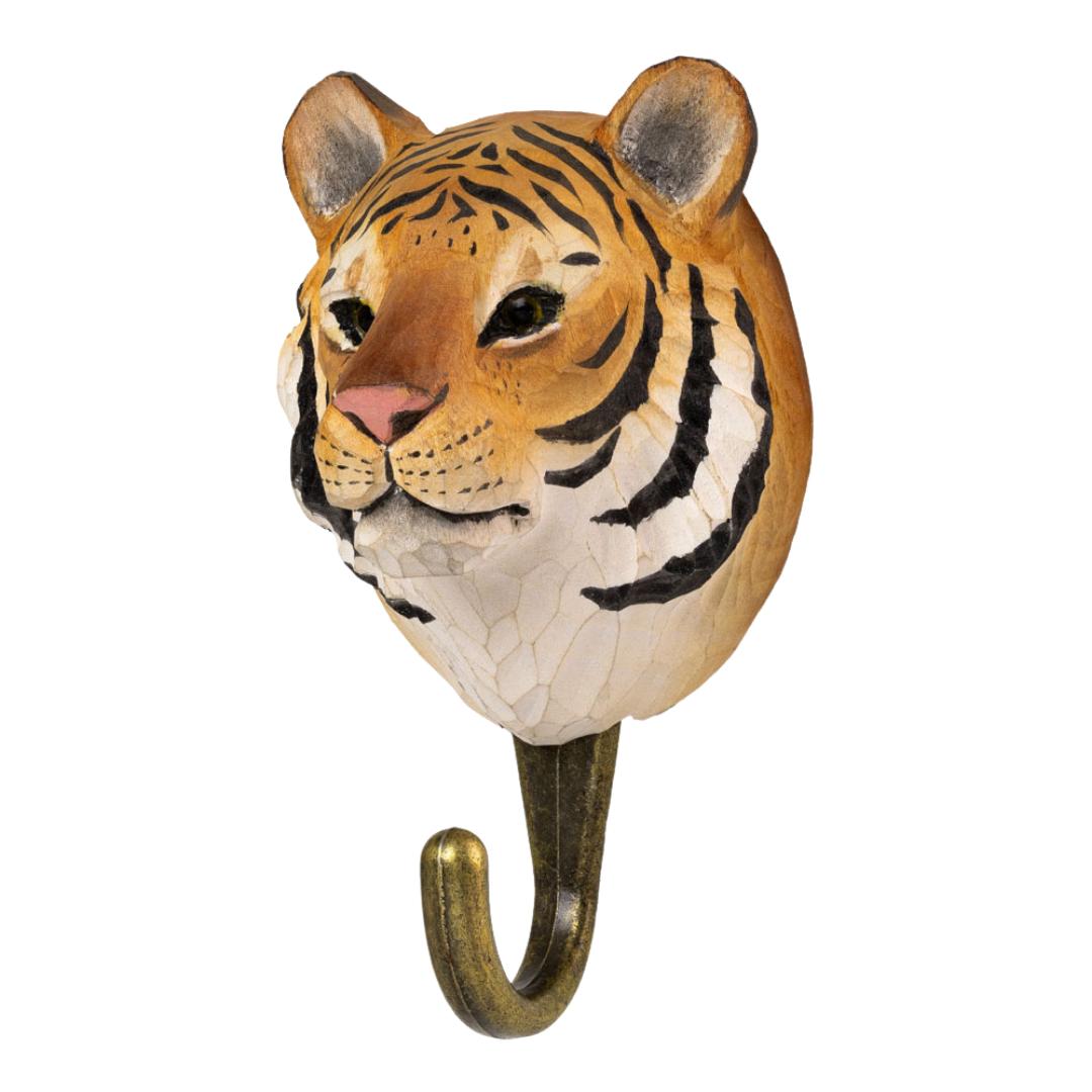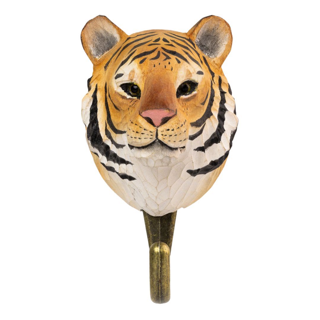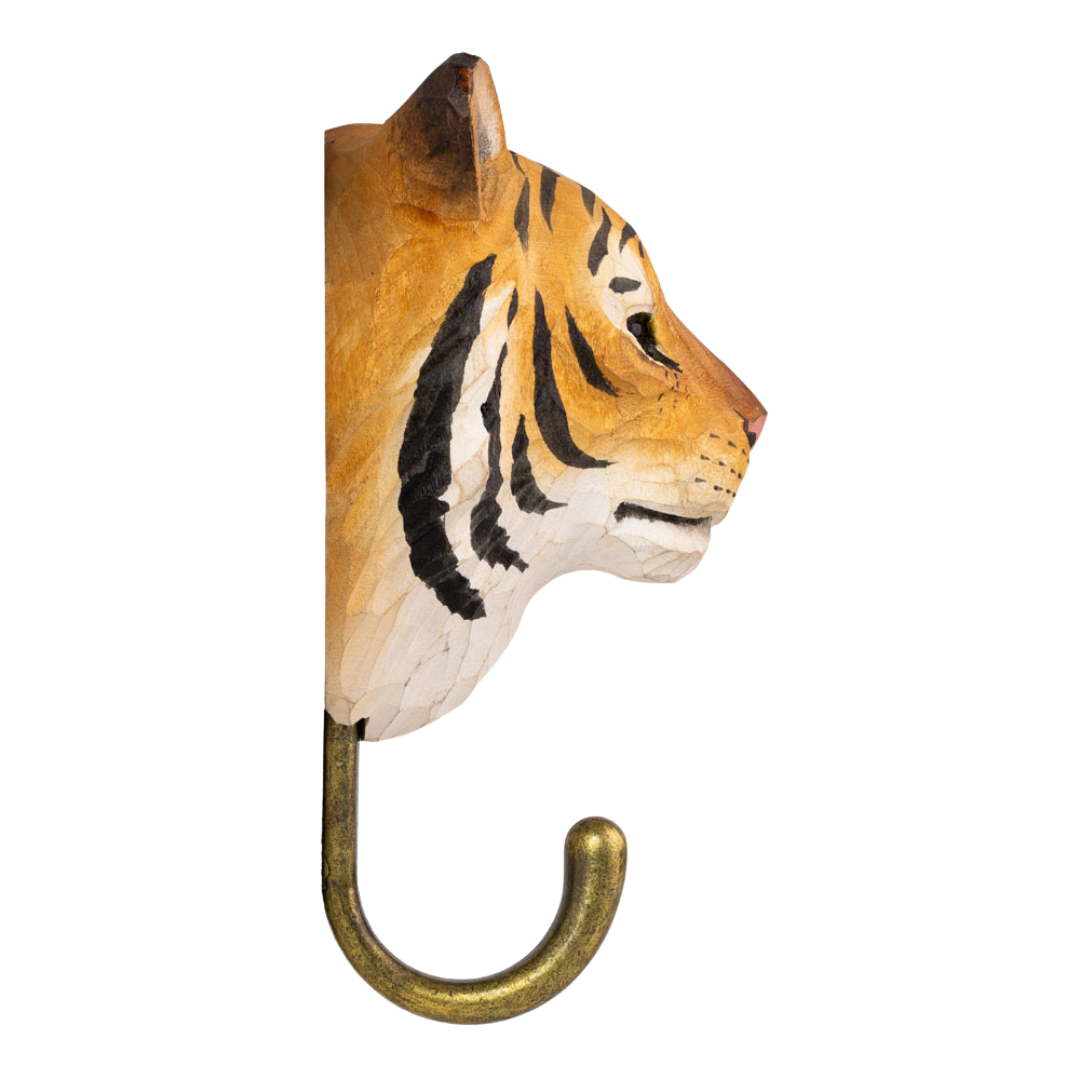 • With its magnificent horns, this wood-carved tiger becomes an eye-catching interior detail to hang your coat on.