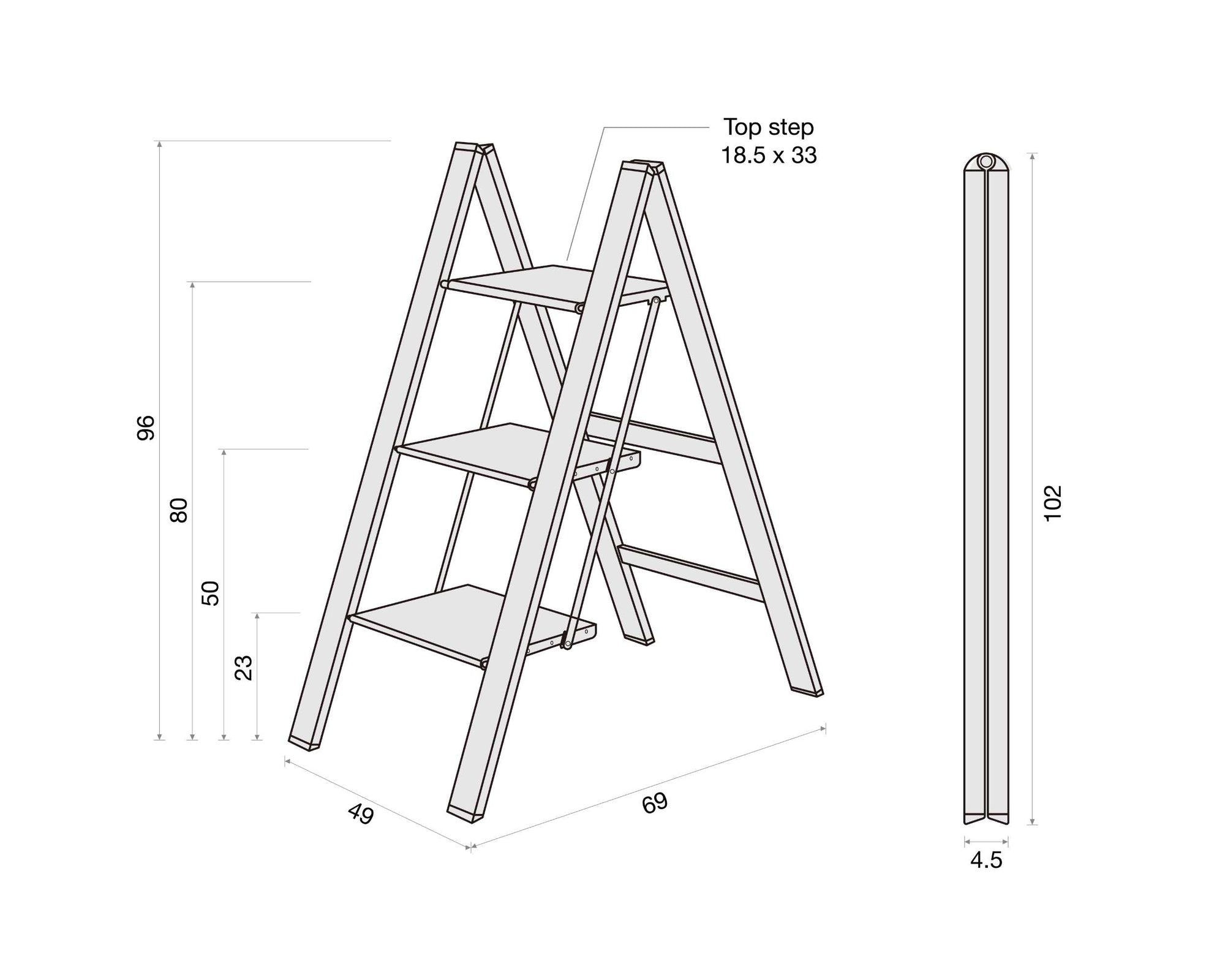 • This version of mini step ladder was built to fit into small gaps between furniture