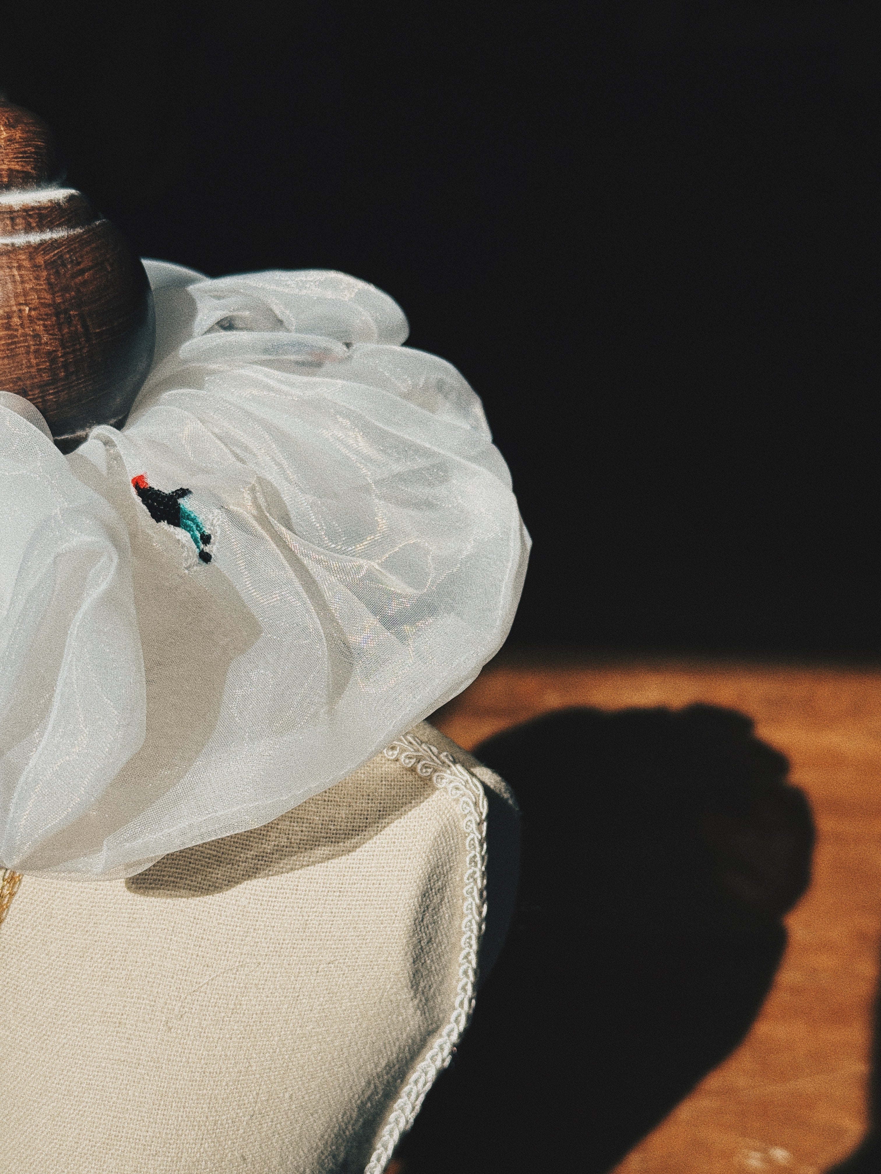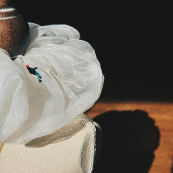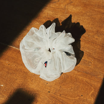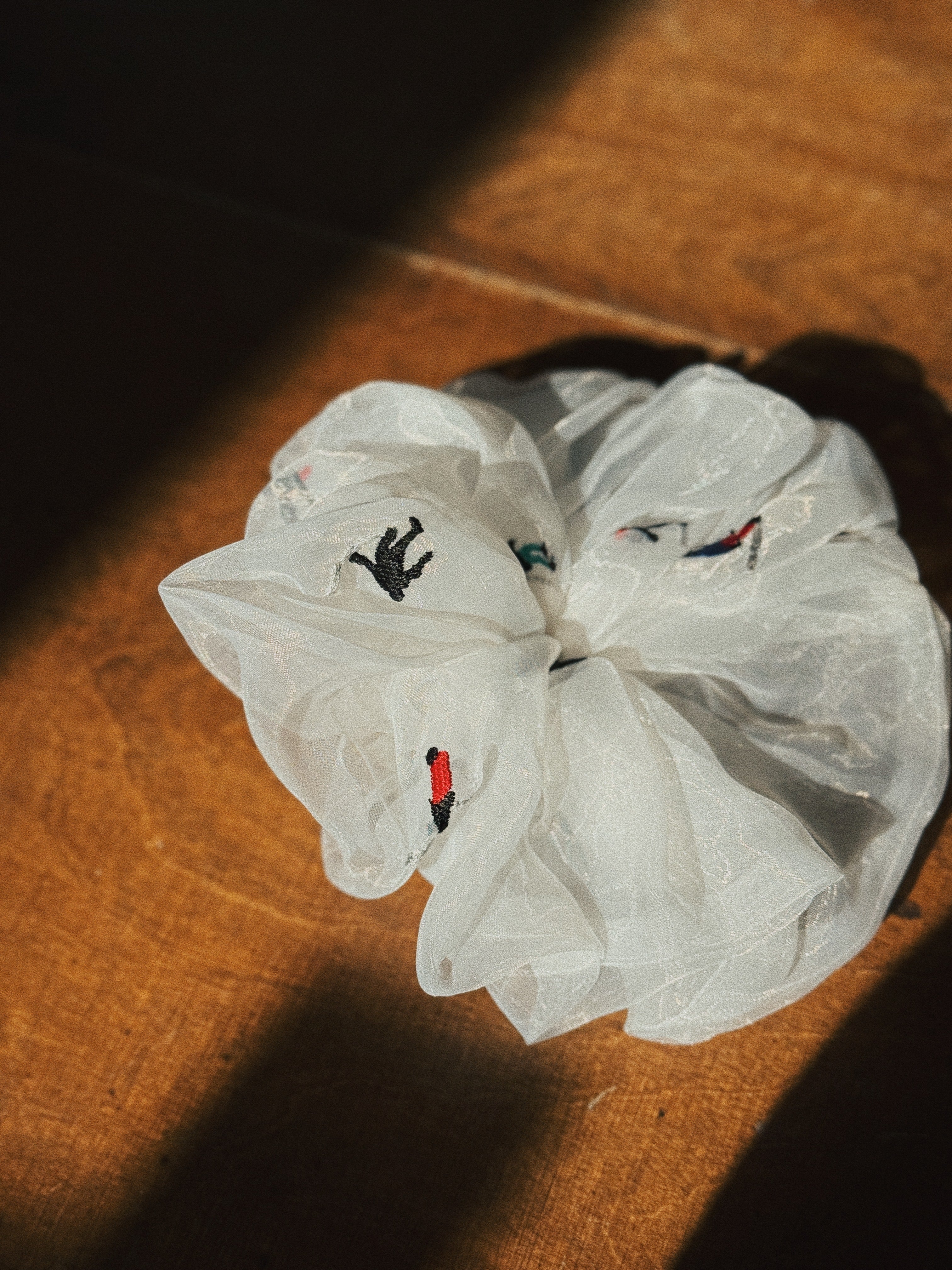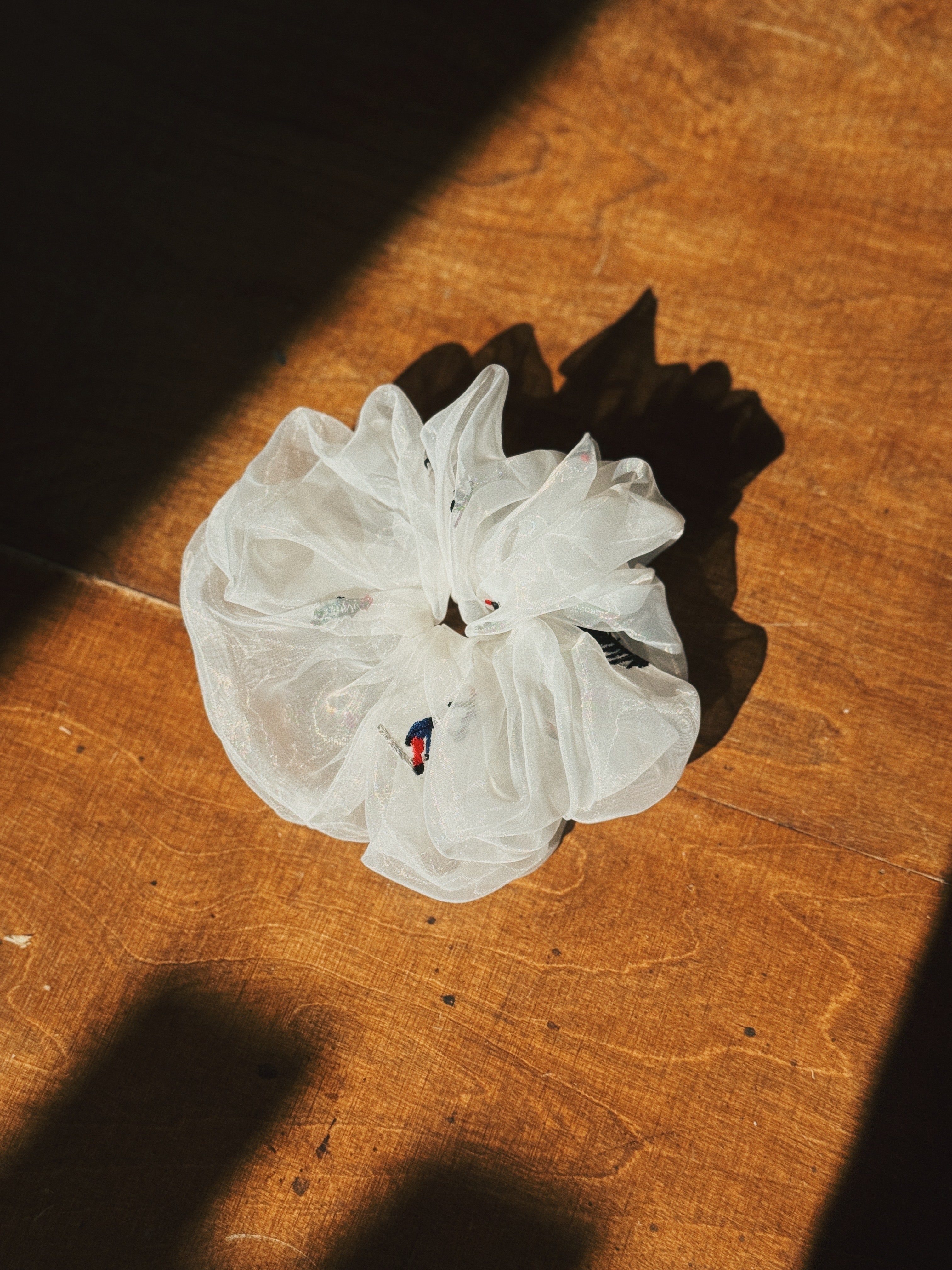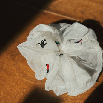 • Lightweight organza scrunchie, cute skiers embroidery