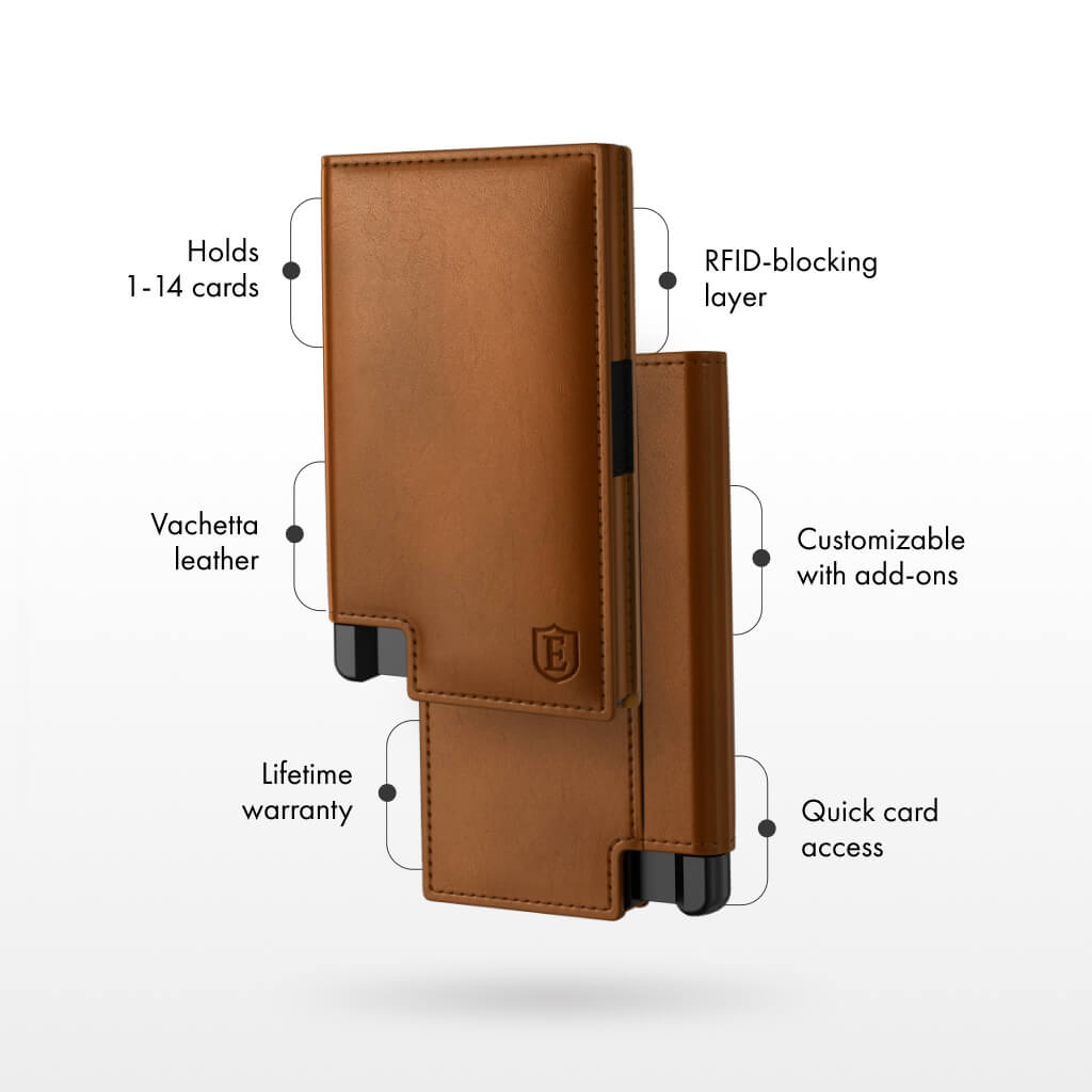 • Holds 1–14 cards and bills (recommended storage: 9 cards)