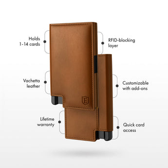 • Holds 1–14 cards and bills (recommended storage: 9 cards)